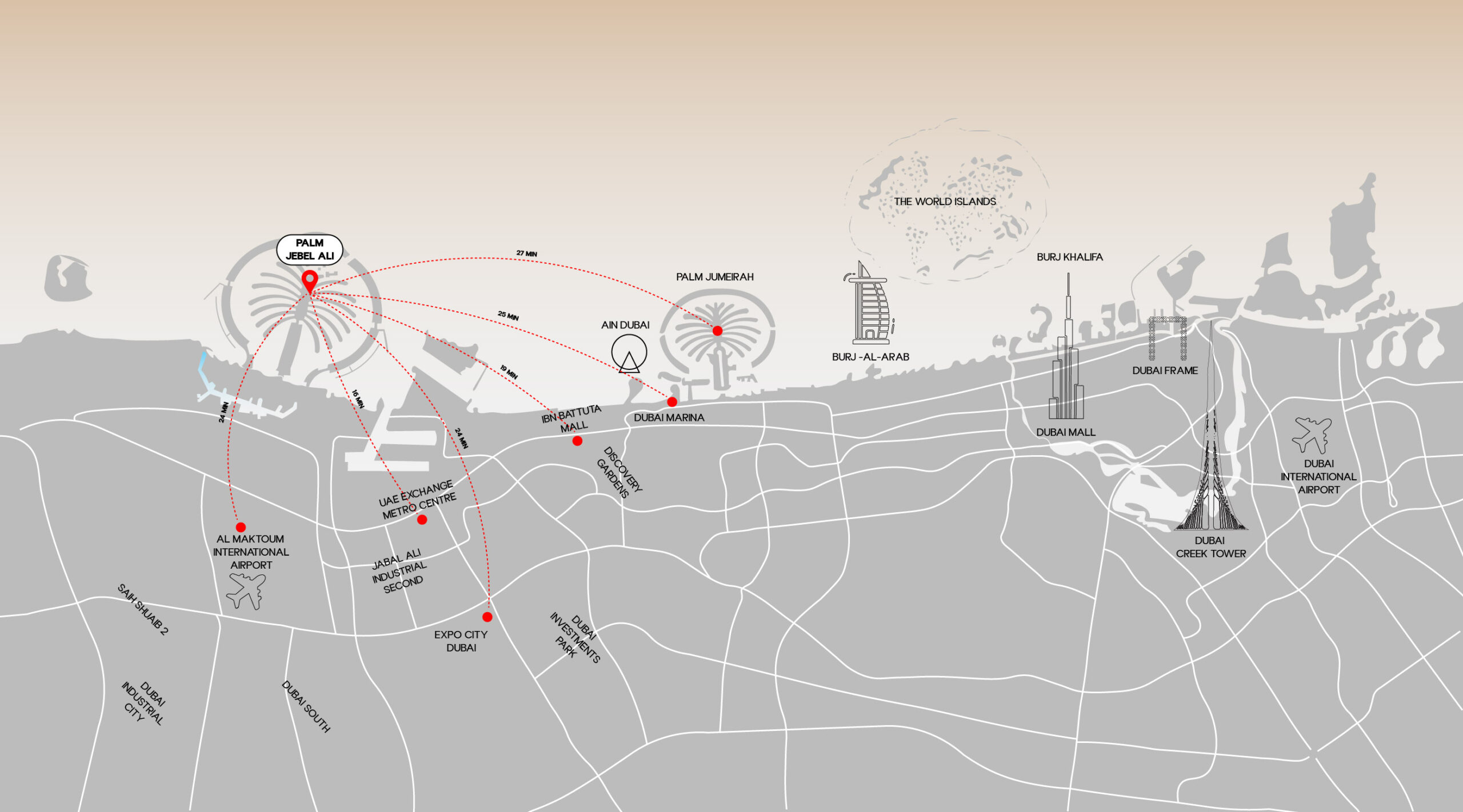 Palm Jebel Ali is a premier waterfront destination redefining luxury living with 5 bedroom, 6 bedroom, and 7-bedroom villas in an exclusive island setting. Spanning 13.4 sq. km., this stunning development features 110 km of coastline, offering a peaceful yet well-connected lifestyle.